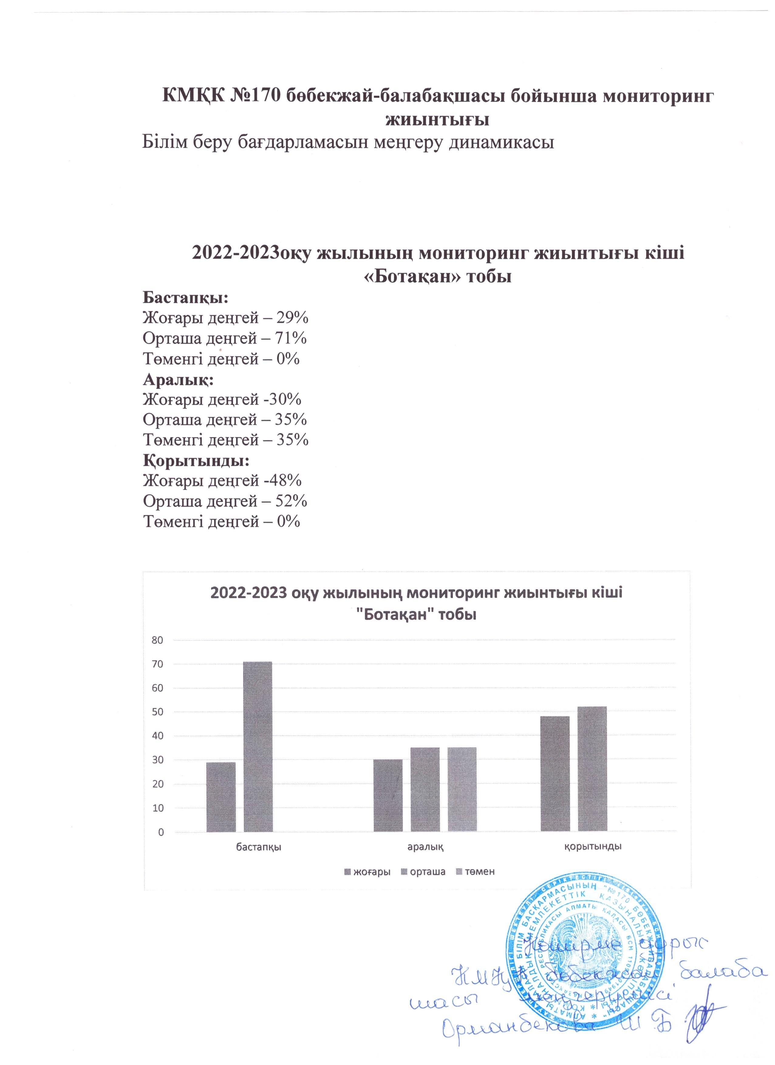 2022-2023 оқу жылының мониторинг жиынтығы ортағы "Балапан тобы"