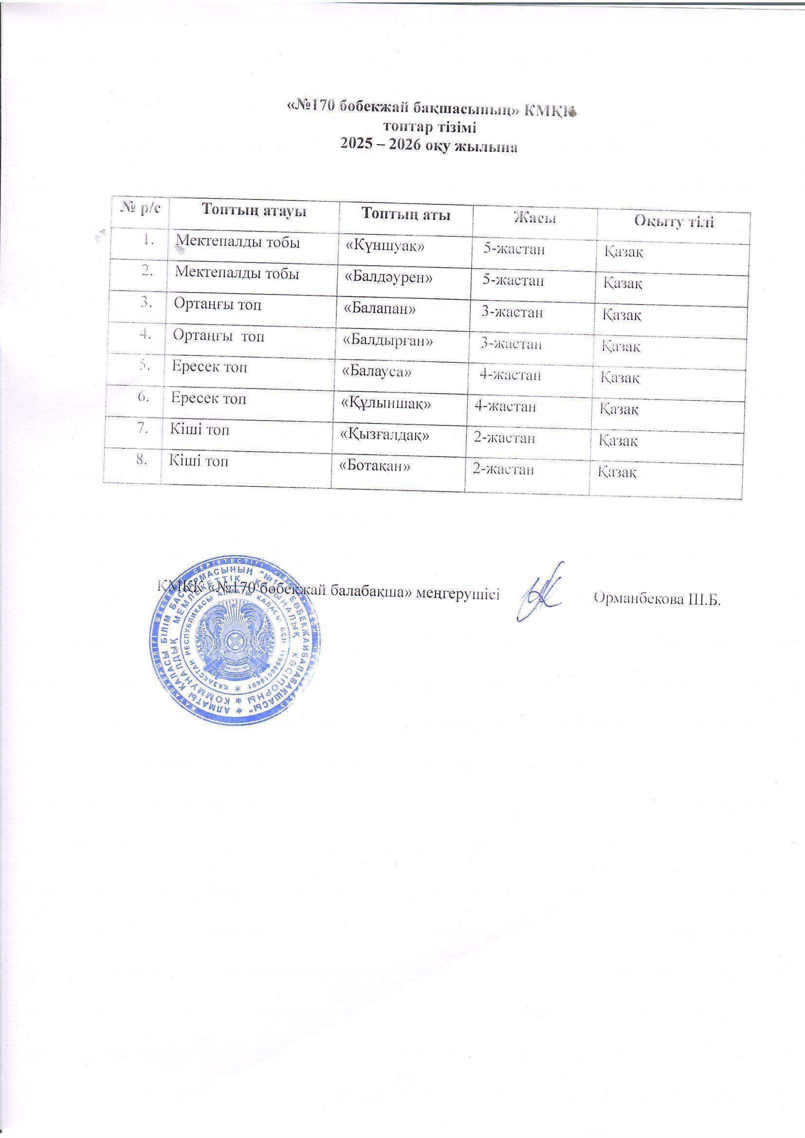 «№170 бөбекжай-балабақша»
